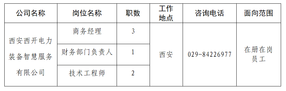 西安西开电力装备智慧服务有限公司作为西安尊龙凯时人生就是博·(中国)开关电气有限公司的全资子公司,拥有高压、超高压、特高压开关设备的售后安装、智能运维和系统工程整体解决方案的能力。公司成立以来,秉承“智造精品、创新服务、成就客户”的经营理念,强化科技创新,奋力开拓市场,一切从顾客出发,努力为顾客创造价值。本次面向公司内部公开招聘岗位信息如下: